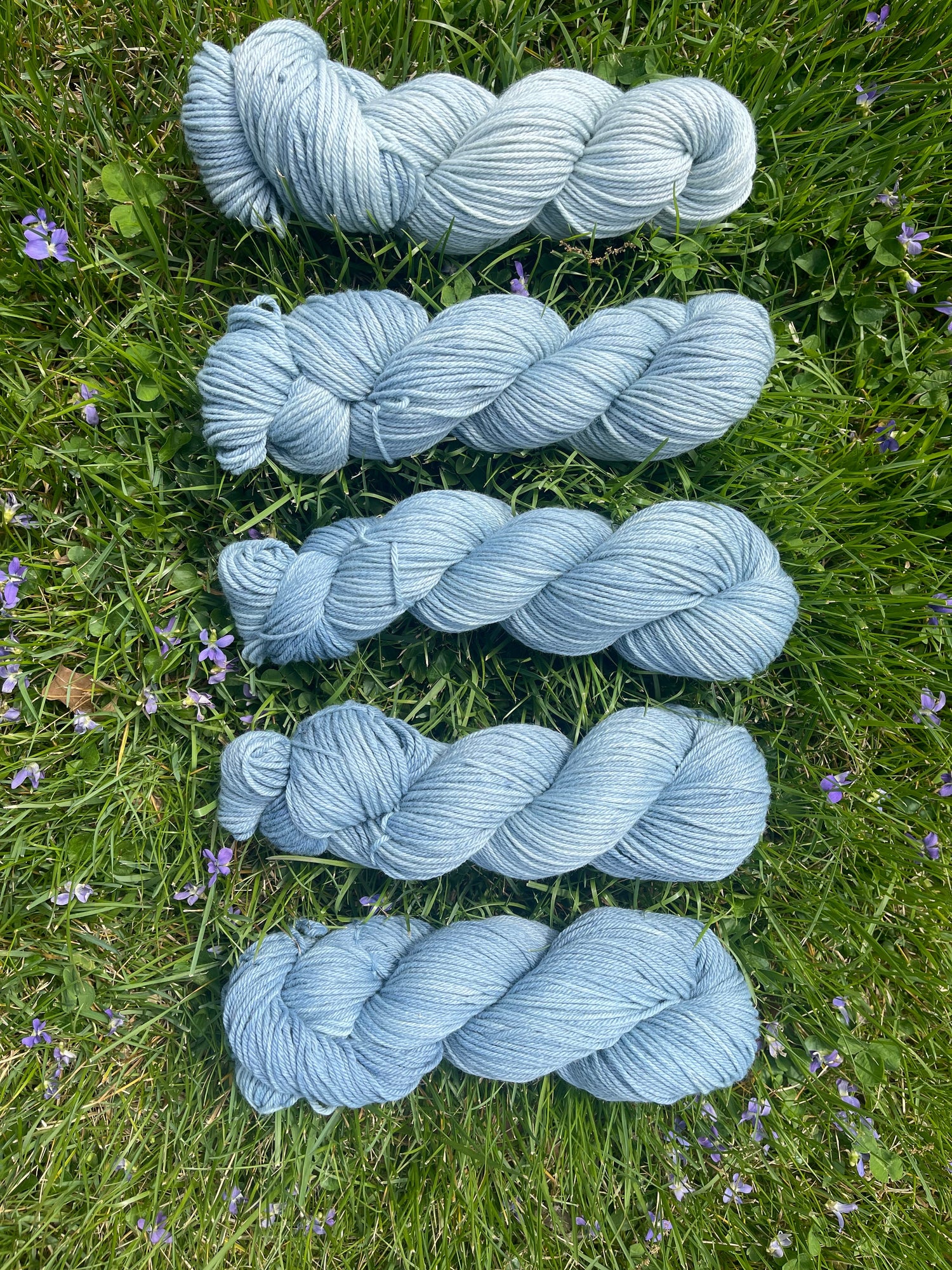 Yarn dyed by hand with foraged, repurposed, and ethically-sourced plant materials.